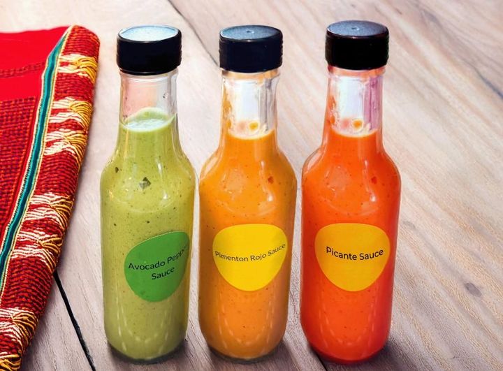 Choice of Sauce: Avocado Pepper Sauce, Picante Sauce, or Pimentón Rojo Sauce