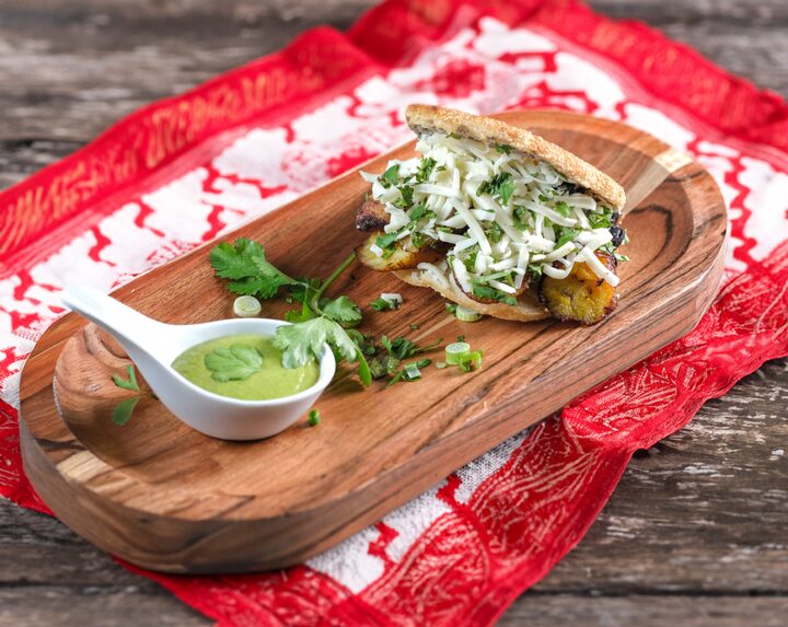 Savor the richness of Arepas, from vegan chorizo to slow-braised and plantain, bean & cheese options